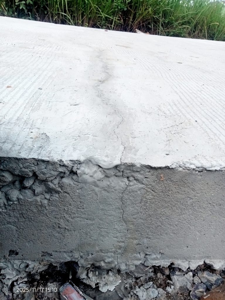 “Baru selesai, sudah patah jalannya. Kami minta ini bisa diperbaiki. Kami ingin jalan ini bisa bertahan lama. Jalan itu patahnya sampai ke bawah, patahnya juga tidak lurus,”  ujar Sayuti.